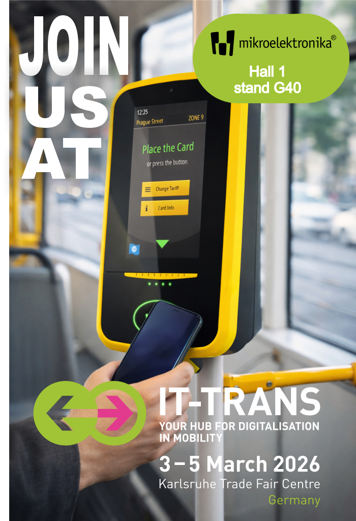 Ve dnech 3. až 5. března 2026 se zúčastníme veletrhu IT-TRANS, předního veletrhu digitálních řešení pro veřejnou dopravu. Setkejme se v Karlsruhe a pojďme si popovídat o inteligentním prodeji jízdenek, digitální mobilitě a budoucnosti veřejné dopravy. Těšíme se na vás!